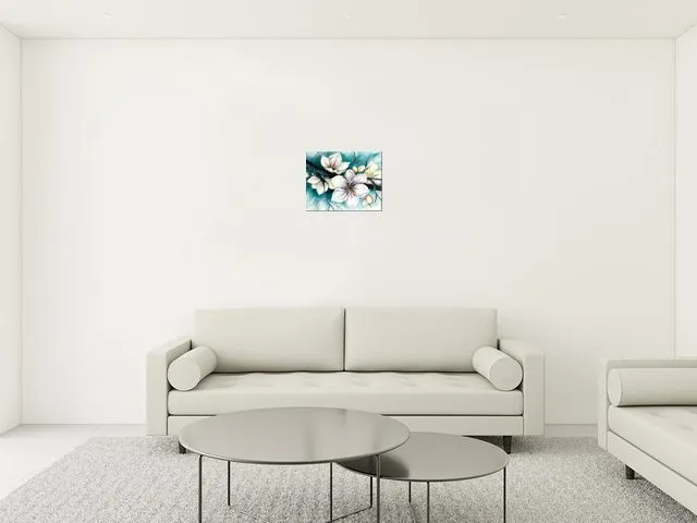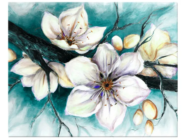 Úvod » Obrazy » Obrazy na plátne » Kvety » Luxusný obraz na stenu Puky višne v tyrkysovej
