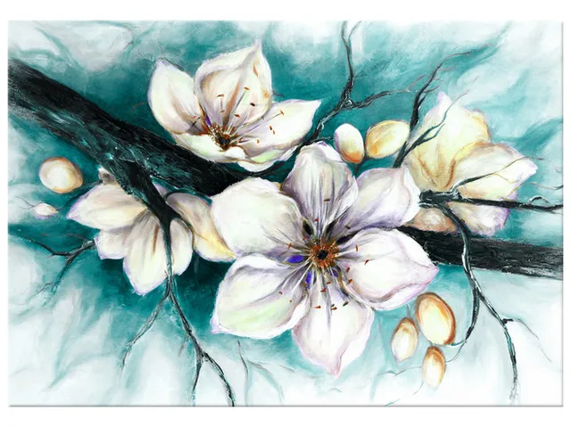 4586A_3AW Luxusný obraz na stenu Puky višne v tyrkysovej |