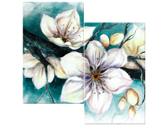 Úvod » Obrazy » Obrazy na plátne » Kvety » Luxusný obraz na stenu Puky višne v tyrkysovej