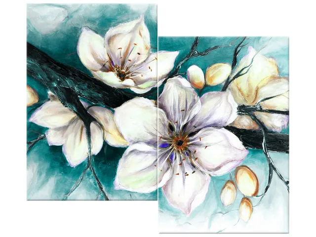 4586A_2J Luxusný obraz na stenu Puky višne v tyrkysovej |