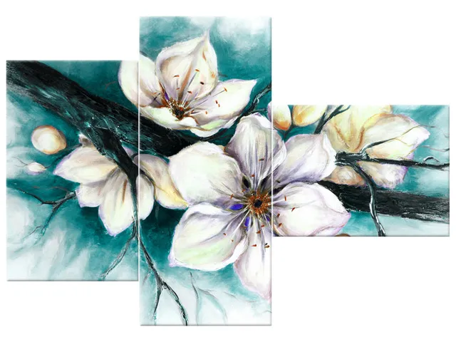 4586A_3AX Luxusný obraz na stenu Puky višne v tyrkysovej |