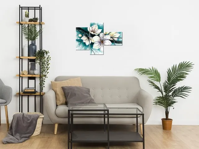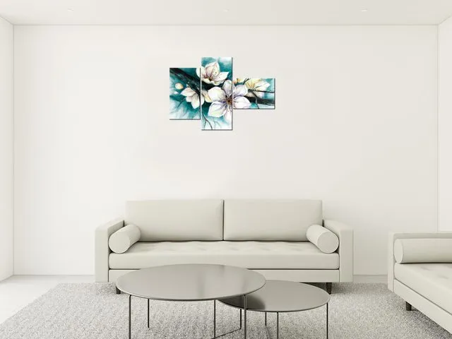 4586A_3J Luxusný obraz na stenu Puky višne v tyrkysovej |