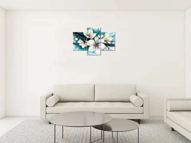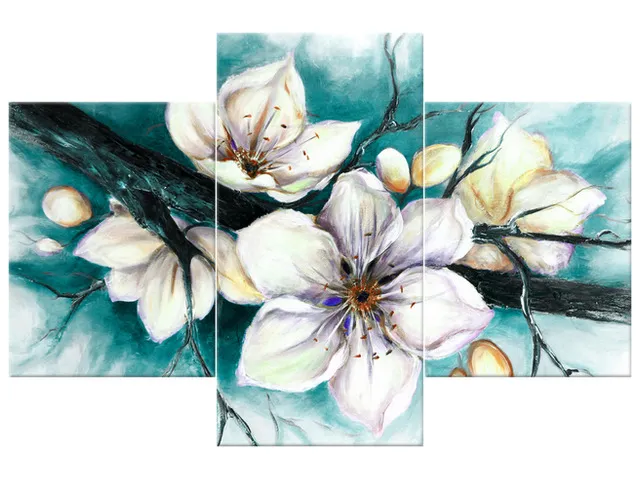 4586A_3M Luxusný obraz na stenu Puky višne v tyrkysovej |