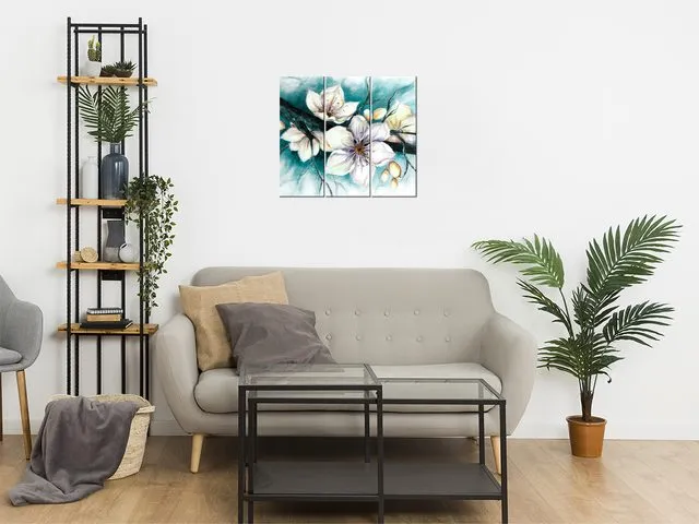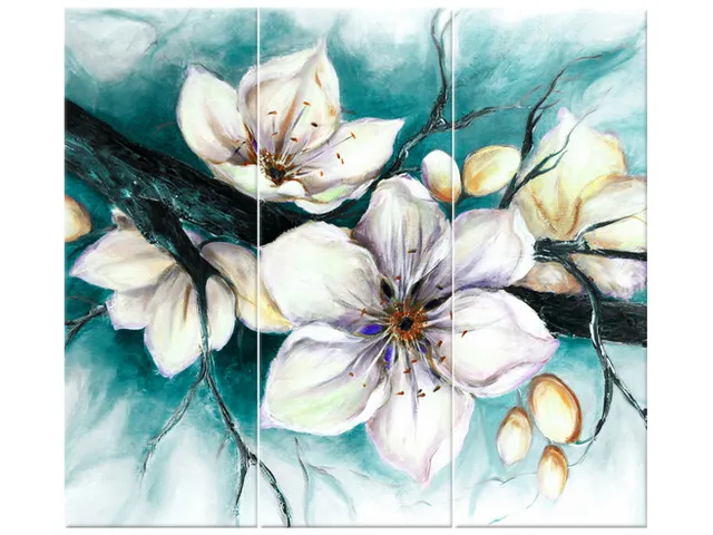 4586A_3M Luxusný obraz na stenu Puky višne v tyrkysovej |