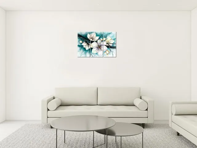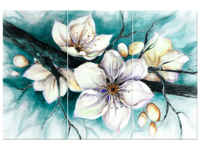 4586A_3M Luxusný obraz na stenu Puky višne v tyrkysovej |