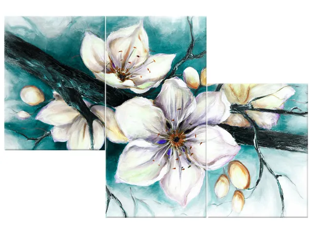 4586A_3M Luxusný obraz na stenu Puky višne v tyrkysovej |