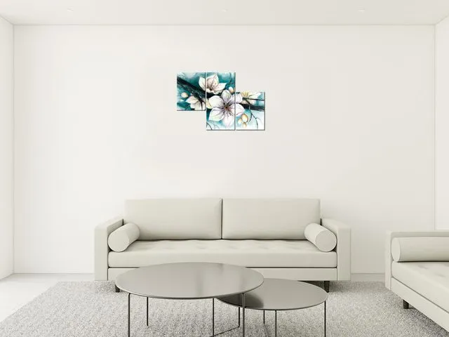 4586A_4A Luxusný obraz na stenu Puky višne v tyrkysovej |
