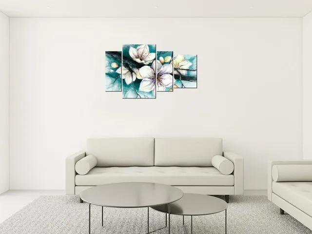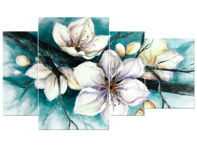 4586A_4H Luxusný obraz na stenu Puky višne v tyrkysovej |
