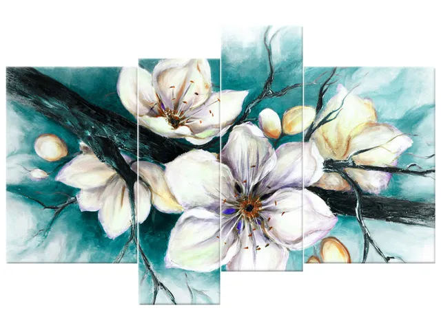 Luxusný obraz na stenu Puky višne v tyrkysovej