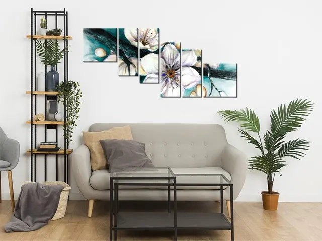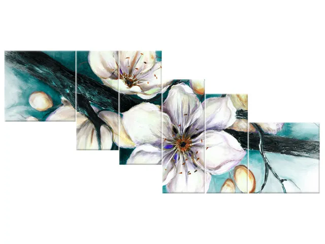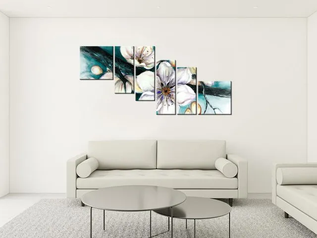 Luxusný obraz na stenu Puky višne v tyrkysovej