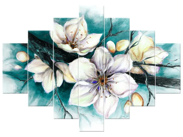 4586A_7B Luxusný obraz na stenu Puky višne v tyrkysovej |