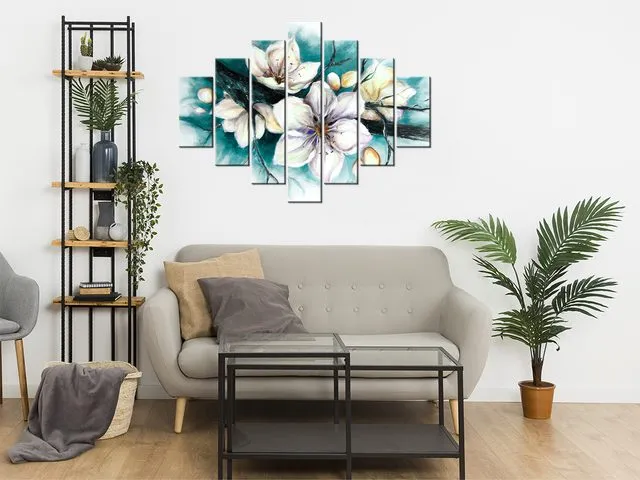 4586A_7F Luxusný obraz na stenu Puky višne v tyrkysovej |