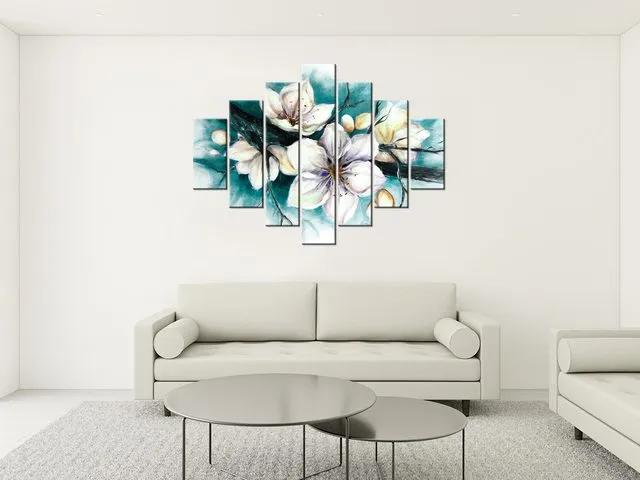 4586A_5N Luxusný obraz na stenu Puky višne v tyrkysovej |