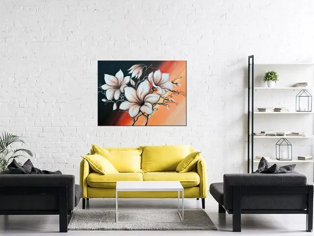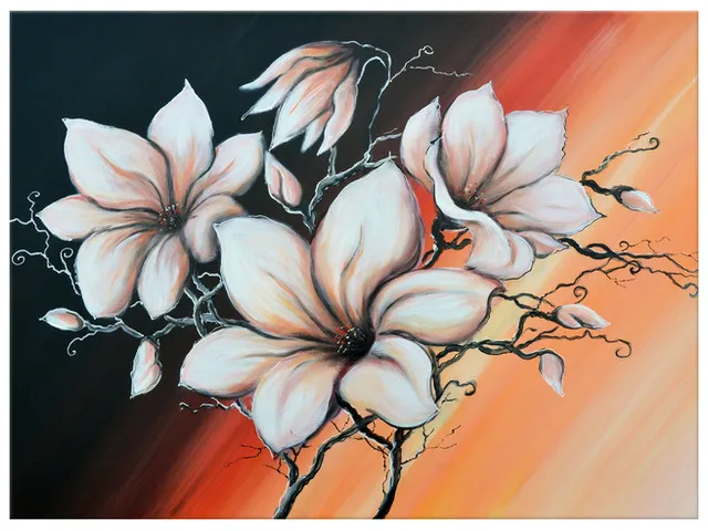 Úvod » Obrazy » Obrazy ručne maľované » Luxusný obraz ručne maľovaný Magnólia pri západe slnka