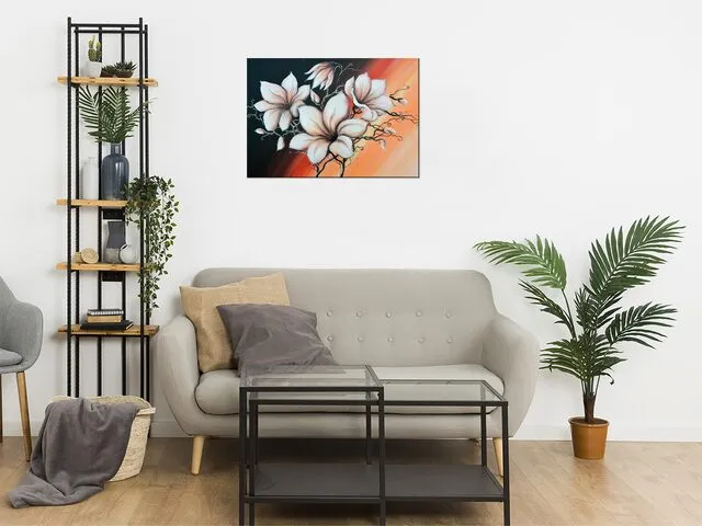 Úvod » Obrazy » Obrazy ručne maľované » Luxusný obraz ručne maľovaný Magnólia pri západe slnka