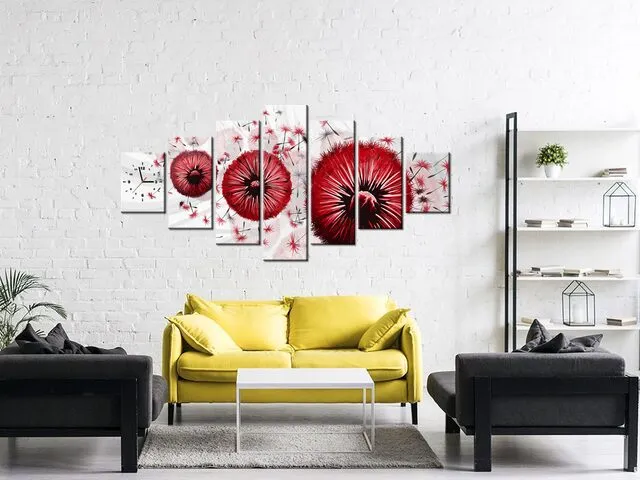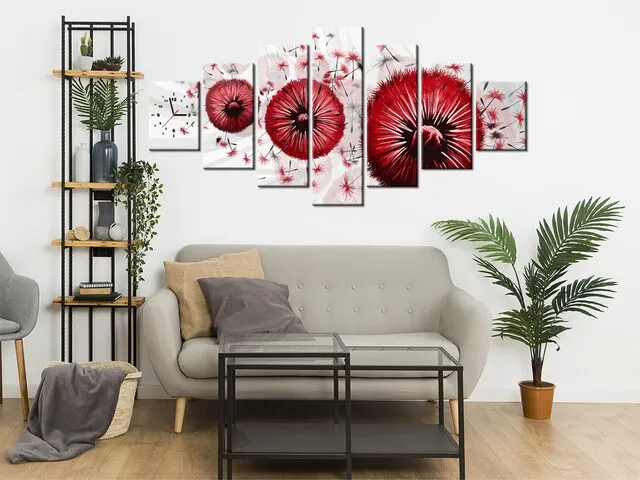 Úvod » Obrazy » Obrazy s hodinami » Luxusný obraz s hodinami Červené púpavy 5