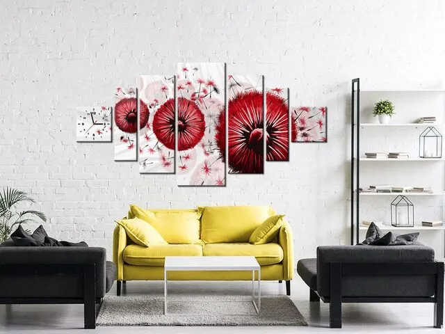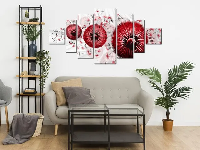 Úvod » Obrazy » Obrazy s hodinami » Luxusný obraz s hodinami Červené púpavy 5