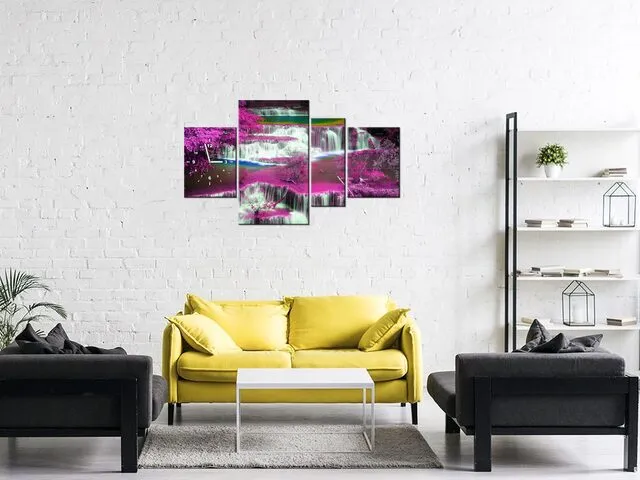 ZP1861A_5H Luxusný obraz s hodinami Fialová kaskáda |