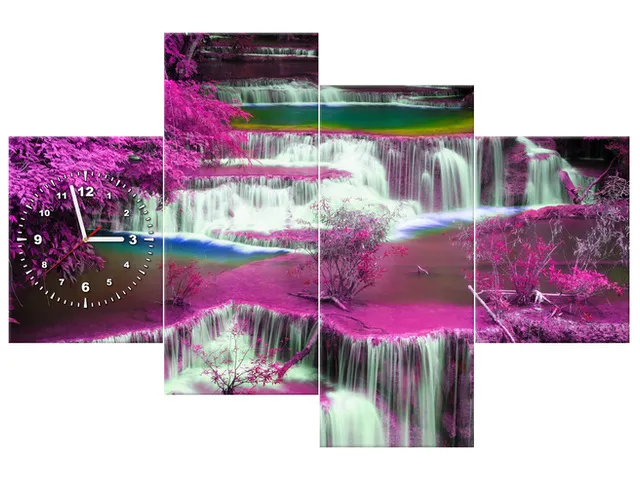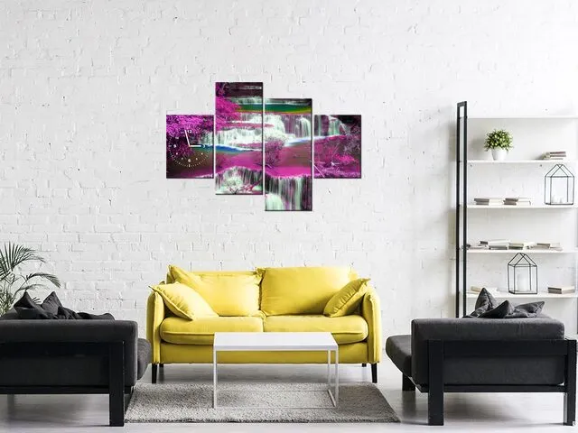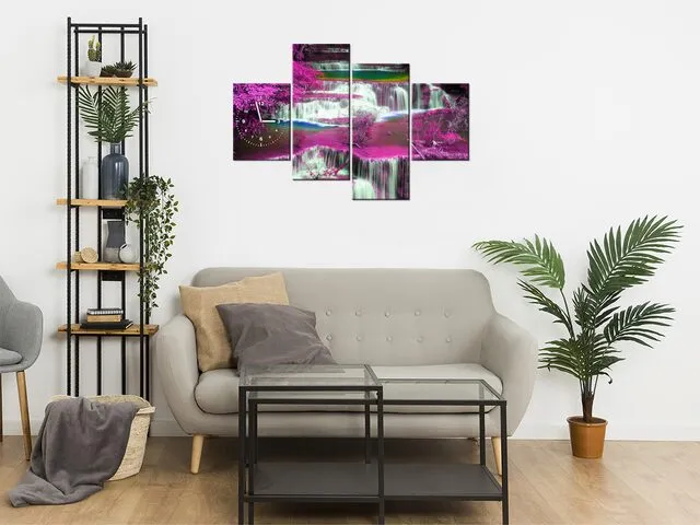 Barion Pixel Luxusný obraz s hodinami Fialová kaskáda