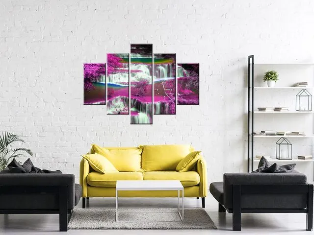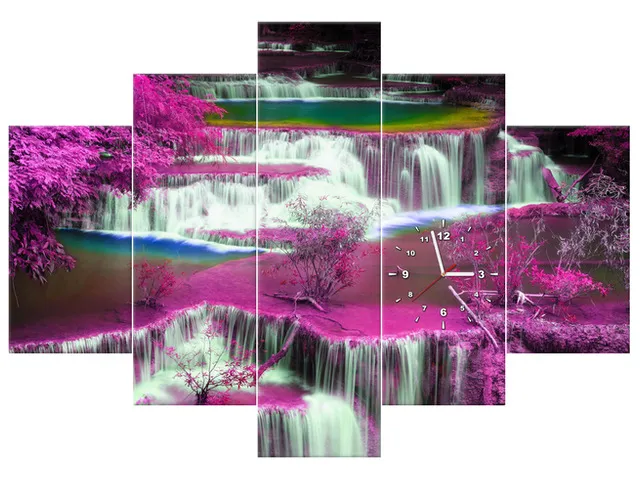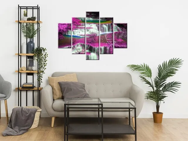 Barion Pixel Luxusný obraz s hodinami Fialová kaskáda