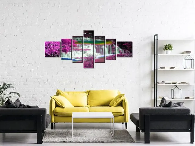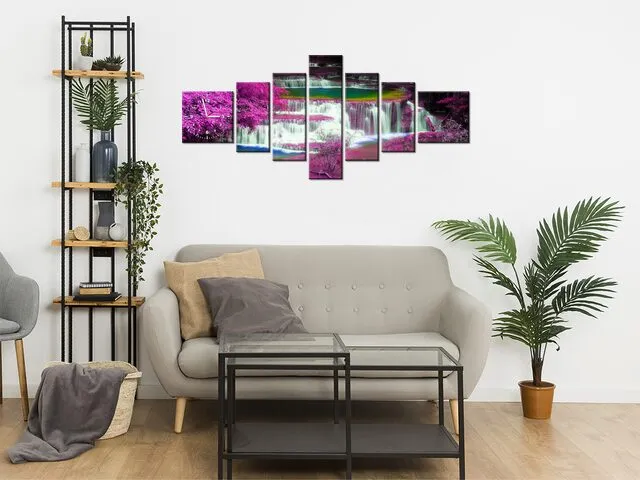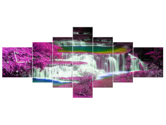 Barion Pixel Luxusný obraz s hodinami Fialová kaskáda
