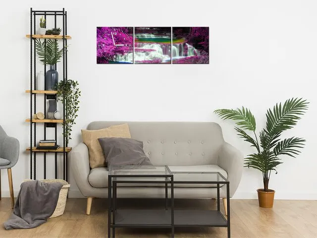 Barion Pixel Luxusný obraz s hodinami Fialová kaskáda