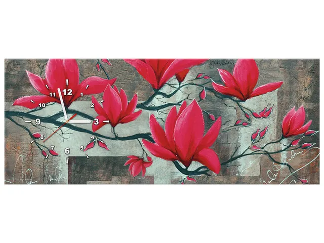 Úvod » Obrazy » Obrazy s hodinami » Luxusný obraz s hodinami Fuchsiová magnólia