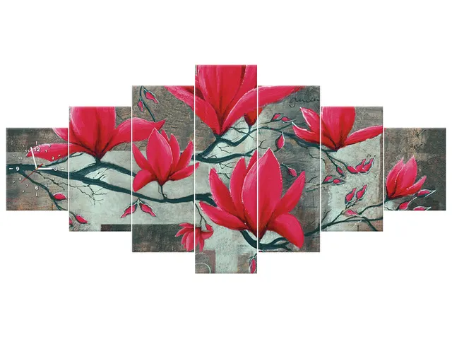 Úvod » Obrazy » Obrazy s hodinami » Luxusný obraz s hodinami Fuchsiová magnólia