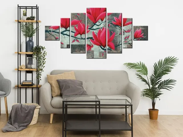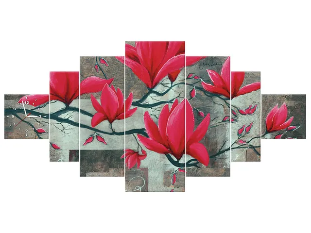 Úvod » Obrazy » Obrazy s hodinami » Luxusný obraz s hodinami Fuchsiová magnólia