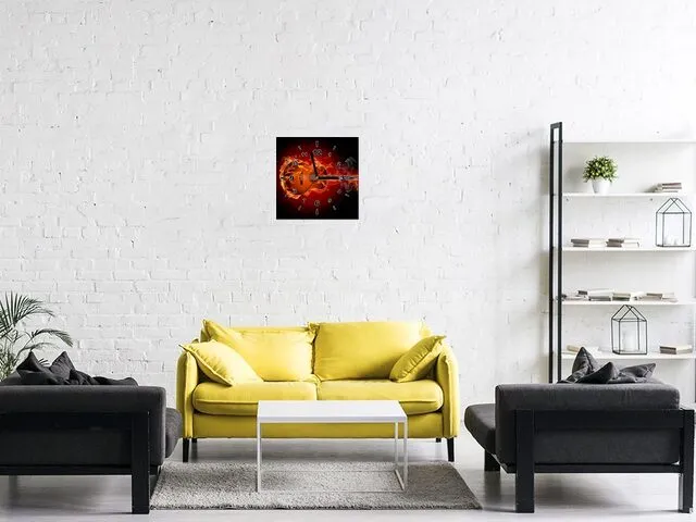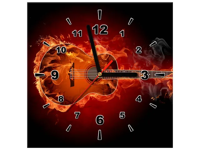 Úvod » Obrazy » Obrazy s hodinami » Luxusný obraz s hodinami Horiaca gitara