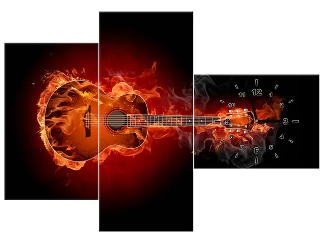 Úvod » Obrazy » Obrazy s hodinami » Luxusný obraz s hodinami Horiaca gitara