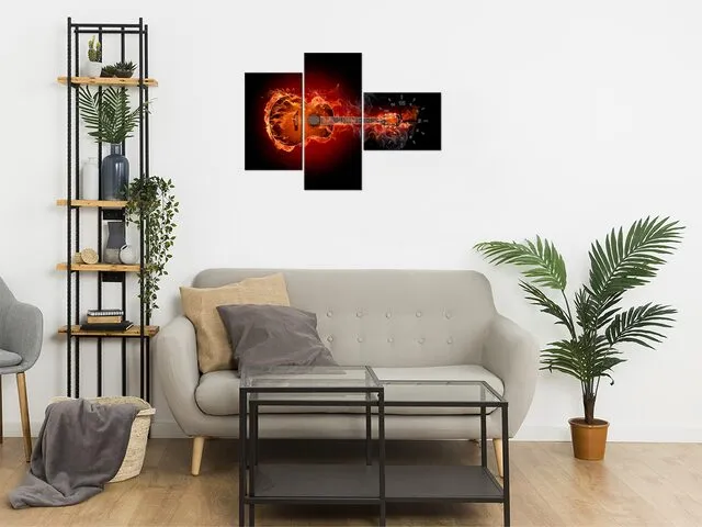 Luxusný obraz s hodinami Horiaca gitara