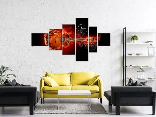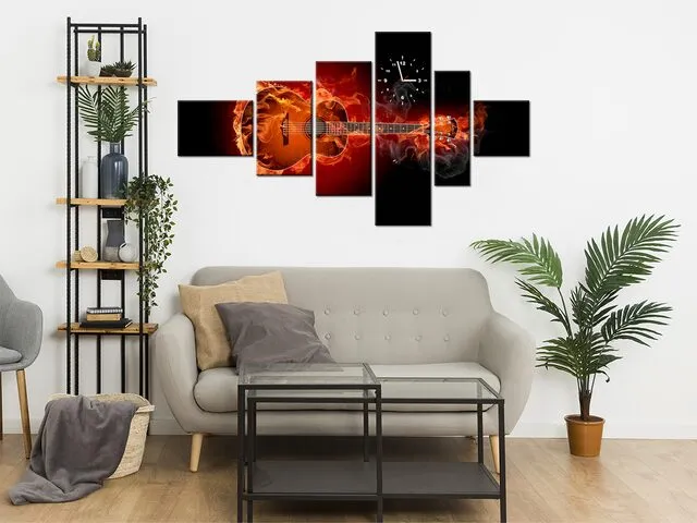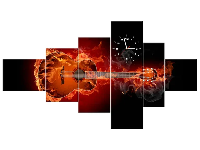 Úvod » Obrazy » Obrazy s hodinami » Luxusný obraz s hodinami Horiaca gitara