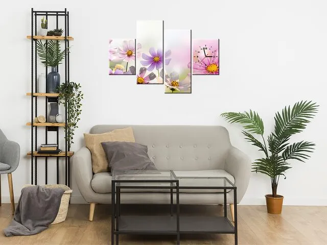 Úvod » Obrazy » Obrazy s hodinami » Luxusný obraz s hodinami Jemné kvety