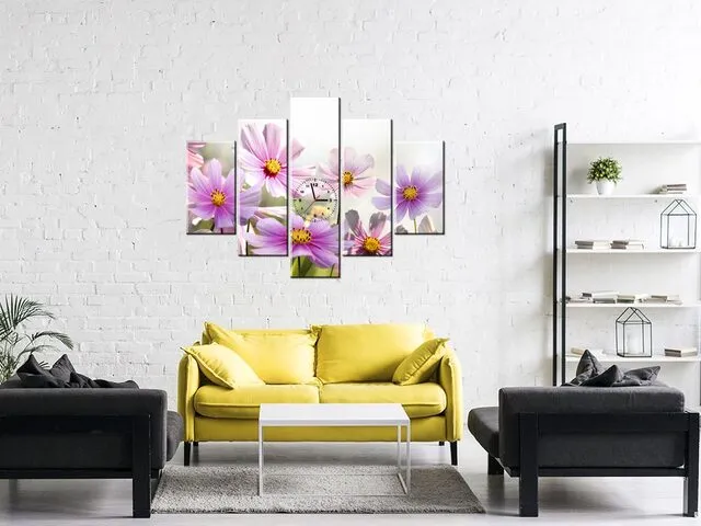 Úvod » Obrazy » Obrazy s hodinami » Luxusný obraz s hodinami Jemné kvety