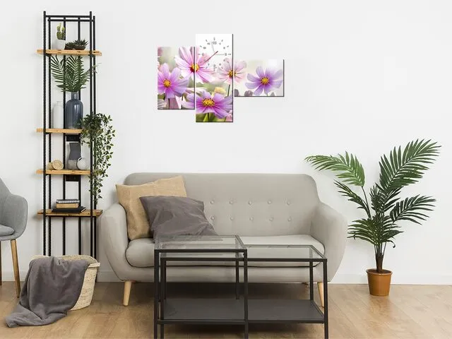 Barion Pixel Luxusný obraz s hodinami Jemné kvety