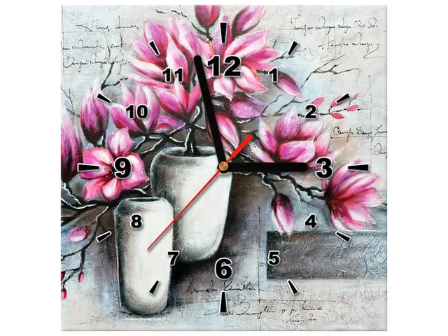 Úvod » Obrazy » Obrazy s hodinami » Luxusný obraz s hodinami Magnólie vo váze
