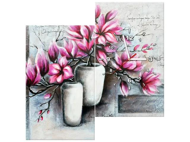 Úvod » Obrazy » Obrazy s hodinami » Luxusný obraz s hodinami Magnólie vo váze