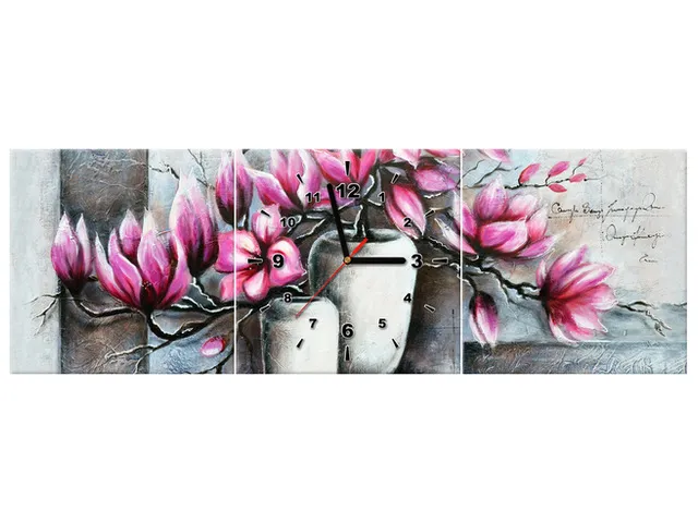 Úvod » Obrazy » Obrazy s hodinami » Luxusný obraz s hodinami Magnólie vo váze