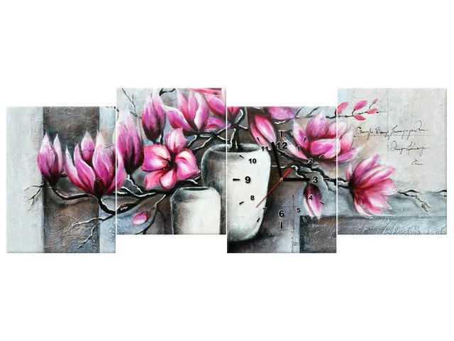 Úvod » Obrazy » Obrazy s hodinami » Luxusný obraz s hodinami Magnólie vo váze