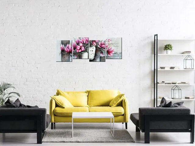 Luxusný obraz s hodinami Magnólie vo váze