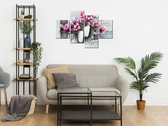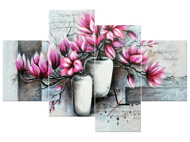 Úvod » Obrazy » Obrazy s hodinami » Luxusný obraz s hodinami Magnólie vo váze