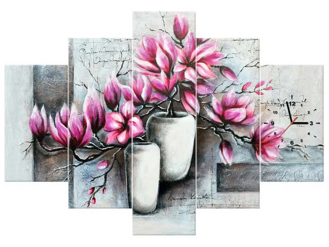 Úvod » Obrazy » Obrazy s hodinami » Luxusný obraz s hodinami Magnólie vo váze