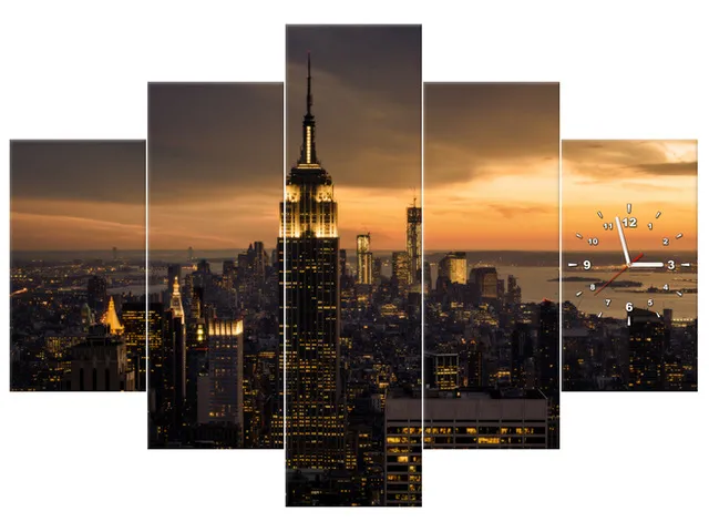 Úvod » Obrazy » Obrazy s hodinami » Luxusný obraz s hodinami New York za svitu