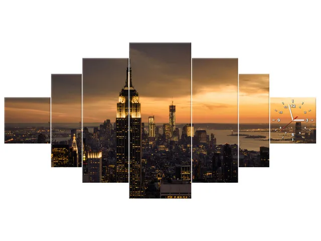 Úvod » Obrazy » Obrazy s hodinami » Luxusný obraz s hodinami New York za svitu