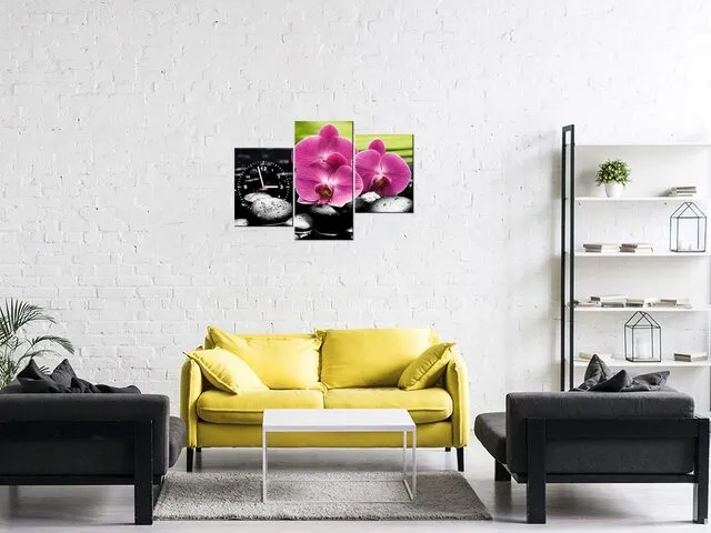 ZP1866A_3AX Luxusný obraz s hodinami Orchidey na kameňoch |