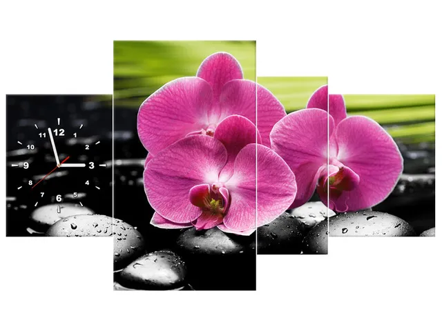 Úvod » Obrazy » Obrazy s hodinami » Luxusný obraz s hodinami Orchidey na kameňoch