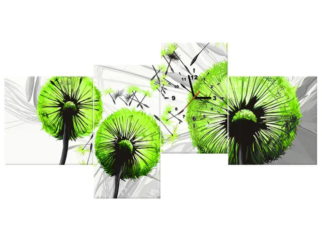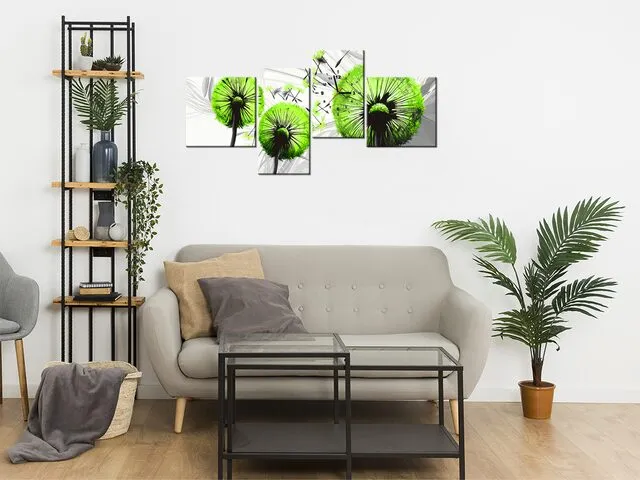 Luxusný obraz s hodinami Púpavy v limetkovej farbe