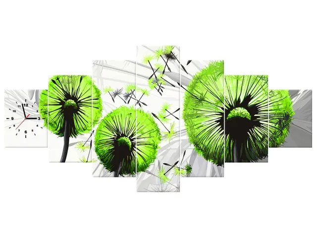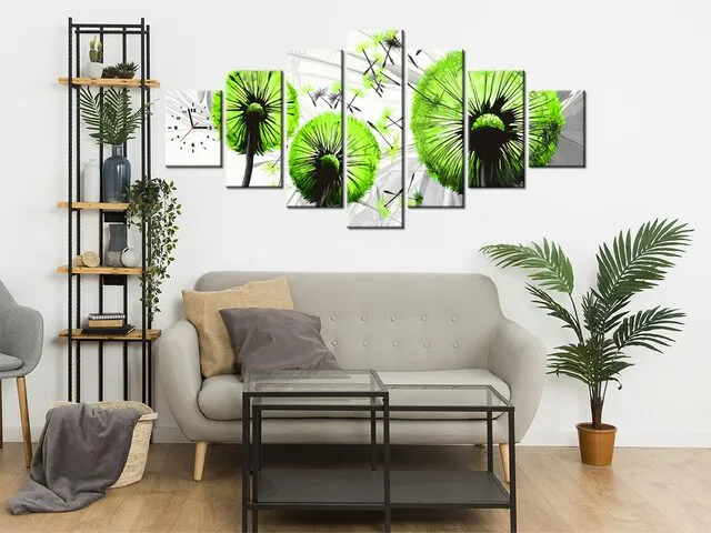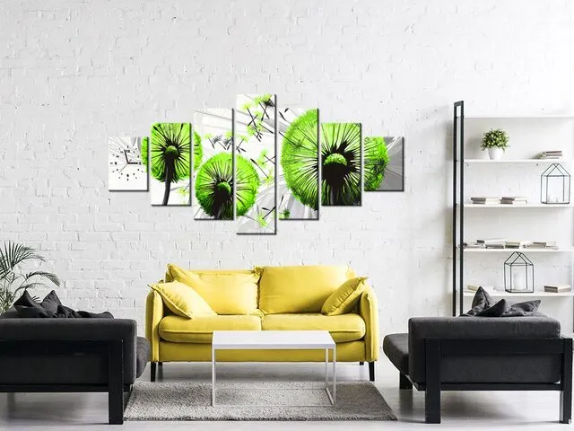 Úvod » Obrazy » Obrazy s hodinami » Luxusný obraz s hodinami Púpavy v limetkovej farbe