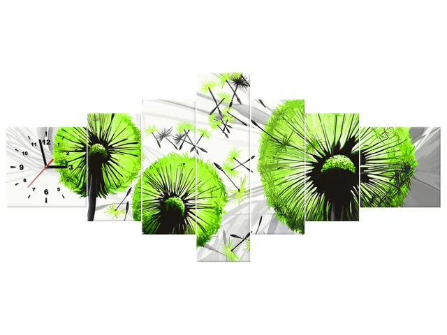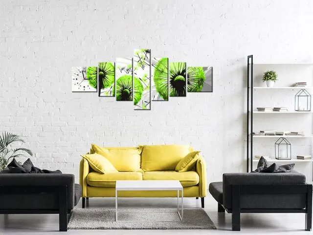 Luxusný obraz s hodinami Púpavy v limetkovej farbe